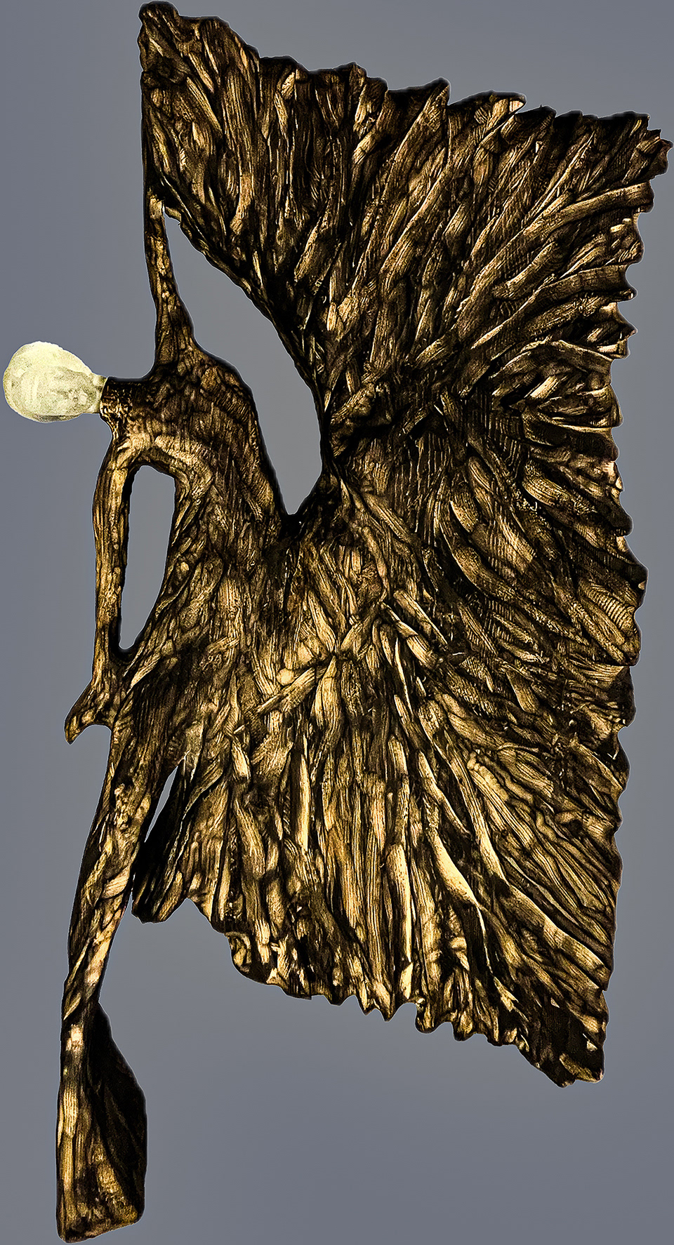 Wooden Carved Sculpture & 3D Designed and Printed Resin Head, 3Feet.3 X 22.5 X 5 Inches
