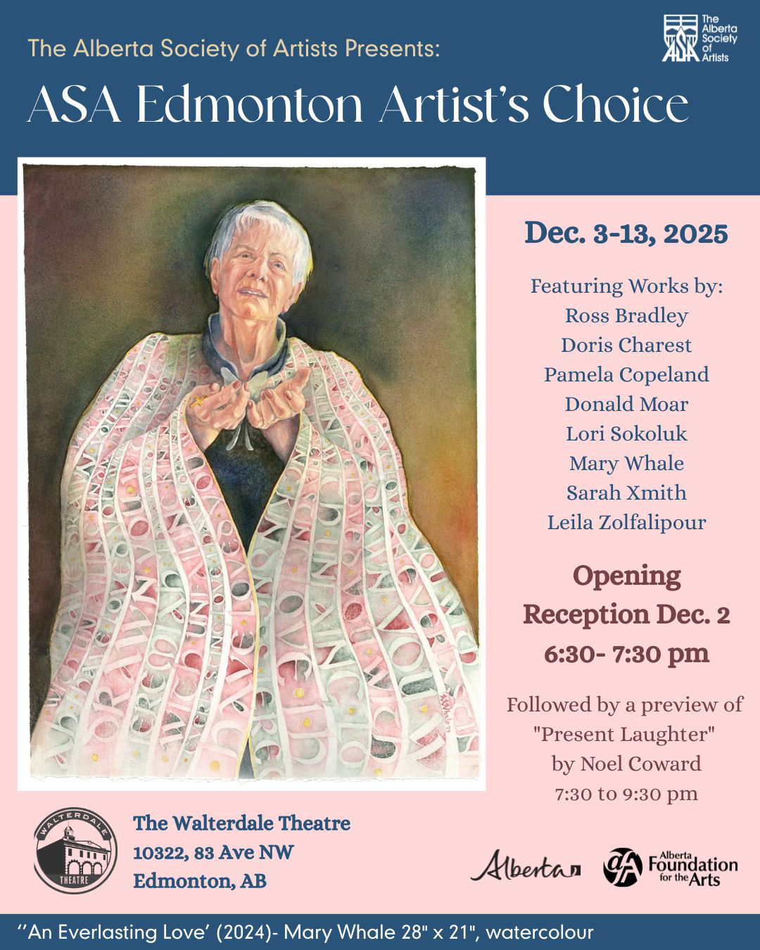 Artist’s Choice at the Walterdale, Alberta Society of Artists, Walterdale Theatre, Edmonton, AB, Dec 2 – 13, 2025.