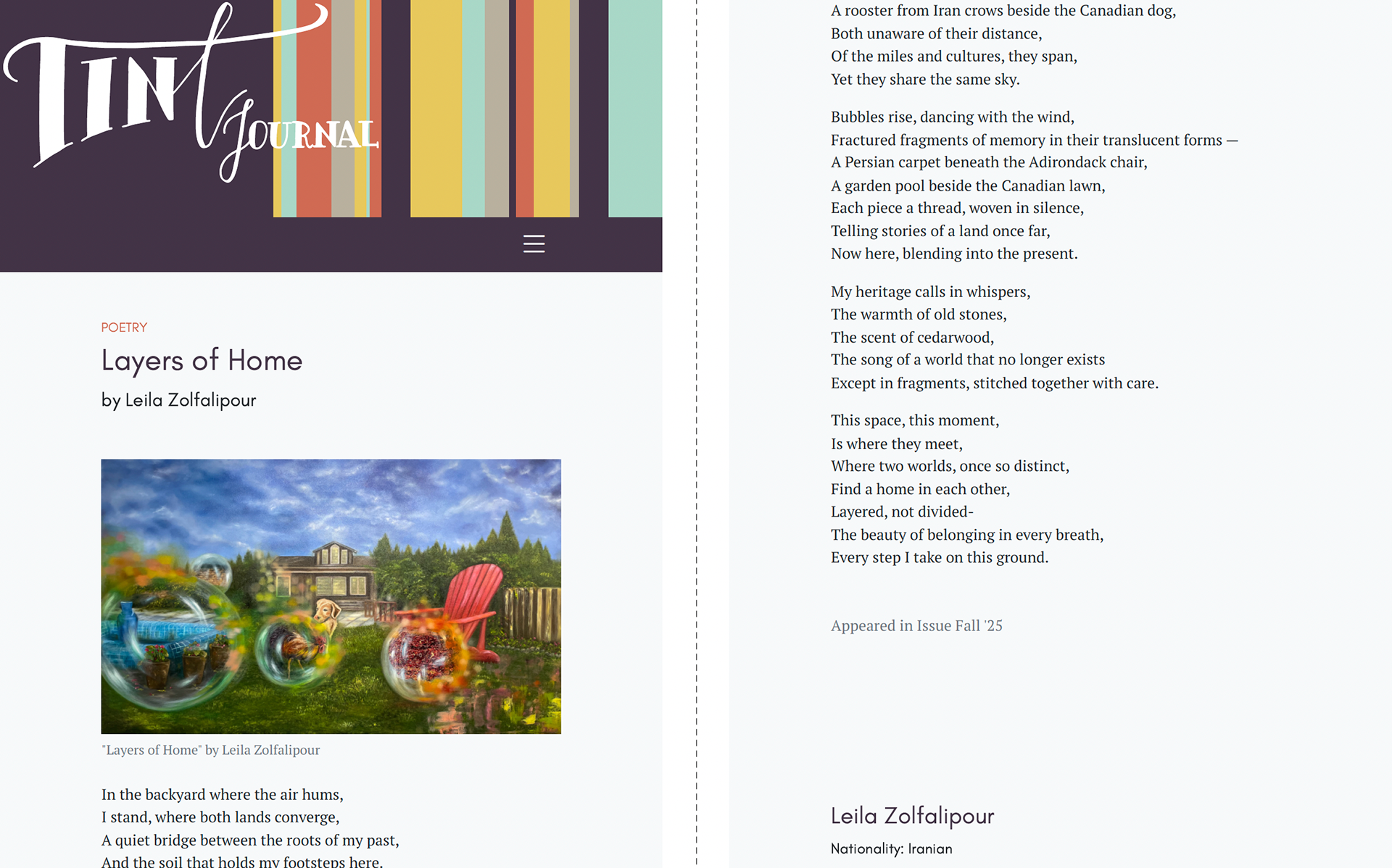 Layers of Home (poem and painting), Tint Journal, Fall 2025 Issue “Patchwork,” September 10, 2025.